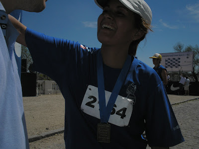 Esta carrera fue realizada en Colonia y fueron 2 en simultaneo 21k mixto y 11k solo damas . ,salimos del barrio historico y alos 3k nos separamos en circuitos diferentes !¡COMIENZA LA DIVERSION!cuando yo pedi un mapa o algo para tener idea del recorrido, me dijeron poco y nada ,solo tenia claro que teniamos CRUCE DE PANTANOS ,ARROLLOS Y SOBRE TERRENO ARENOSO !Yo no imagine que heramos tantos atletas pra la largada!ANGELITA YO! y como nunca sali del fondo!!!!!recien al k1 pude escaparme del peloton! logre llegar a unos 100m de los de adelante y ya nos desviamos ,A CAMPO TOTALMENTE DE UNA UN BOSQUE DE PINOS ! tenia a 3 chicas delante mio y CORRIA .CORRIA .CORRIA SIEMPRE PRACTICAMENTE .....SOLA en mi mente se me crusaba que miserable soy ! si podria correr los 21k porque no me anote !pero ta mi primer experiencia ,empesa de abajo LUZ!!! y bueno me diverti el PAISAJE ESPECTACULAR!!! todo muy bien señalizado el circuito muy controlado , la cual permitia correr con mucha confianza ,en un medano recuerdo subi gateando jejeje! y lo baje de 2 saltos y termine rodando ME MATE DE RISA SOLA ! y siempre sola sola sola , es asi que cuando faltaban unos quizas 800metros EL SUPER GABY me alienta con que si no soy la 10 soy la 9 ,PA ESO ME ENCANTO!!! un fotografo me pregunto a qyue pais representaba ,ta obvio con todo mi orgullo ,URUGUAY ! pa eso fue re lindo porque fue una OLA DE APLAUSOS y ese BAMO ARRIBA ! fue hermoso ta y empese a dar todo lo que me quedaba ,lo LINDO FUE AL LLEGAR TODA ESA GENTE QUE ME ABRASABA Y YO NO ENTENDIA NADA , paresia la 1 je je je je je je!pero no fu ni la 10 ni la 9 ,fui la 8 en la gral de los 11k y primera URUGUAYA !!!!!! IUPI!!!!!!! TENIA UN TENDAL DE FOTOGRAFOS Y TA FUE RE LINDO , yo seguia preocupada porque , pense que las DAMAS de 11k heramos poquitas y me quede a ver que tantas llegaban pero fue de gran sorpresa al ver que fueron casi 700 las compañeras mias ,de Argentina ,Chile y URUGUAY . y serca de 1200 los de 21k mixtos fue muy lindo . mi tiempo fue a pesar de que son competencias fuertes en resistencias . YO LLEGUE EN 52 MINUTOS!!!!.......LOS AGRADESIMIENTOS SE LOS LLEVA EL SUPER GABY A MI PEQUE MAURICIO . POR EL AGUANTE Y TODO LOS AMO .FUE UNA MUY LINDA CARRERA .Y FUE EL 30 DE SETIEMBRE 2007